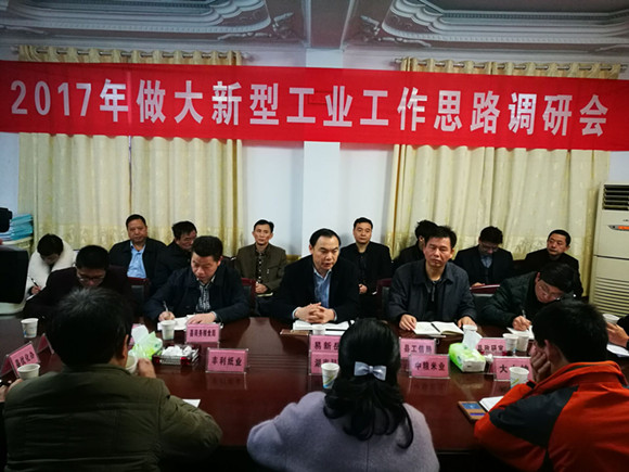 12-12,县委常委、县委办主任易新岳主持召开全县2017-新型工业工作思路调研会议。工信局、商粮局、政研室、经研室、生态工业园、建材园、台创园等部门负责人以及科伦制药、亚泰陶瓷、中粮米业等14家企业负责人参加。会上,与会人员畅所欲言,各抒己见,结合各自实际分别就如何做大新型工业作了发言。听取汇报后,易新岳肯定了各企业为我县所作的贡献,并指出了当前企业面临的问题。