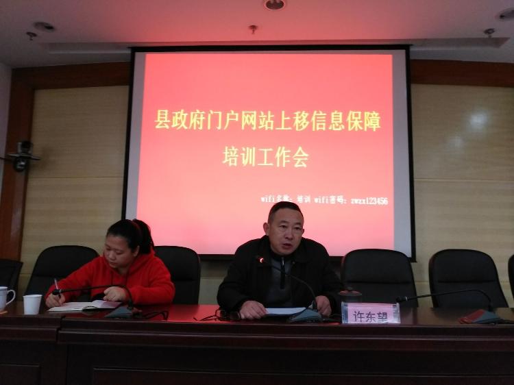 为全面落实国家、省市政府相关文件要求,我县政府网站平台已全部上移至市电子政务云平台托管。为让信息保障人员尽快熟悉新网站后台信息报送、信息管理等操作,全面深化各乡镇、各部门进一步做好政务公开政务服务工作理念,充分发挥县政府门户网作为政务公开政务服务第一平台的功能,11月21日,县政务中心组织召开县政府门户网站技能操作培训工作会。培训会议的召开是我县政府门户网站上移后工作开展的一个新的起点,我们将通力合作,齐心协力,扎实工作,不断开创政务公开政务服务工作信息化的新局面。县政务中心主任许东望同志针对培训会做了会前要求、会后总结,并作了今年起政务公开政务服务在全县绩效考核中实行倒扣分制的总体要求,参会人员包括县直单位、乡镇网站信息保障负责人及政务中心管理人员共110人参加,会议达到了预期效果。