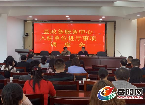 岳阳日报全媒体讯(记者 谭振华 彭扬飞 通讯员 刘伟刚 李岳花)岳阳县政务服务中心为贯彻落实“不忘初心 牢记使命”主题教育精神,对照党章党规找差距,结合当前全县“最多跑一次”改革工作,11月1日在政务服务中心视频会议室组织召开了全县入驻单位进厅事项调度会,会议由32家入驻政务服务中心单位的首席代表和审批股长参加,县委组织部副部长苏艳明同志出席了会议。