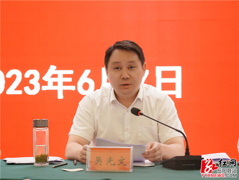 吴光文在讲话时要求,要坚持高位对标不动摇,高点谋划、高位推进林长制工作;要维护林业安全不懈怠,以“时时放心不下”的责任感抓好防火工作;要加快产业发展不松劲,让小油茶真正成为富民大产业;要守护森林资源不放松,狠抓森林图斑问题整改,大力推进国土绿化行动,加强林业有害生物防控;要坚持改革创新不停步,围绕体系完善抓创新、围绕碳汇交易抓创新、围绕基层基础抓创新,要发挥优势,年内实现标准化林业站全覆盖,进一步健全完善乡镇林长办、林业站一体化运行模式,切实提升基层林业管理服务能力,总结出可复制可推广的经验,全力打造“岳阳县样板”。