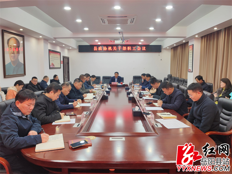 岳阳县融媒体中心12月21日讯(记者 周昱君)12月21日,县政协机关干部职工会召开。县政协主席周里主持会议,副主席刘卫兵、彭荣欣、张忠新、王敏、敖珊出席。