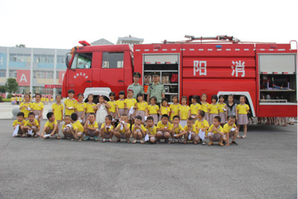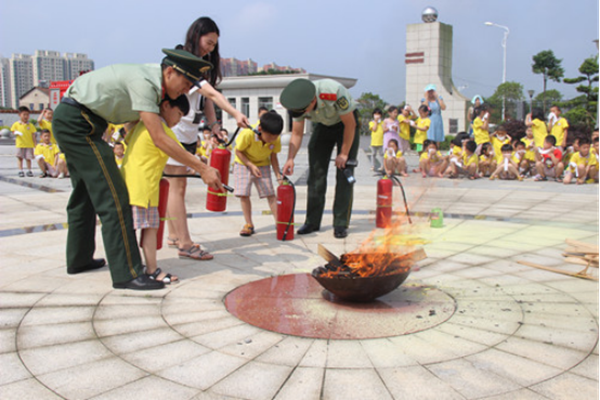 随后全体师生在学校操场集合,宣传人员采用一些简单形象的问题与学生互动,有针对性地讲解了如何报警、如何在火场进行逃生自救的消防知识;同时,为了让师生真正的接受这些消防知识,掌握初起火灾的扑救方法,消防官兵们还手把手地教师生们如何使用灭火器灭火,让师生们亲身体验到用灭火器灭火的“实战演练”;最后,带领小朋友们参观了消防车,演示了水带水枪的使用方法和其他简单器械的操作,使师生们切实掌握灭火器的使用方法和注意事项,为构筑“平安、和谐”的校园生活夯实安全基础。
