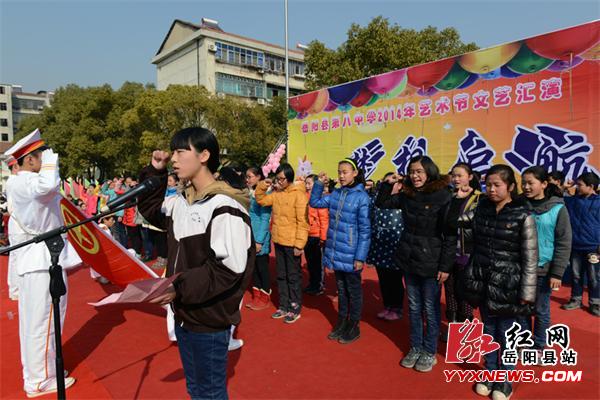 12-24下午,岳阳县八中以“用艺术点亮人生,用行动实现梦想”为主题的校园文化艺术节在该校激情上演,活动旨在让广大同学在艺术的海洋里去体验美、感悟美,从而获得道德的提升和人格的升华。县教育局相关负责人及上千名学生、家长观看了演出。