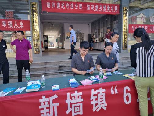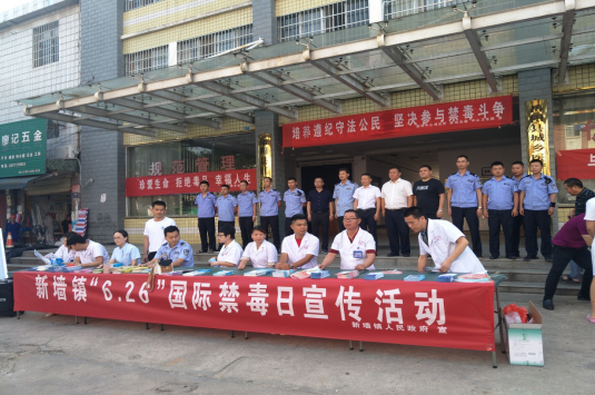 为进一步夯实禁毒人民战争的群众基础,增强群众识毒拒毒防毒能力,提升辖区群众自觉抵御毒品侵害,6月26日上午,新墙镇人民政府联合禁毒办、派出所、司法所、法院、卫生院等相关部门,在镇中心街道人员密集处开展禁毒宣传活动。出席活动的主要领导有新墙镇党委书记周立雄、新墙镇镇长鲁伟、派出所所长徐满齐等。