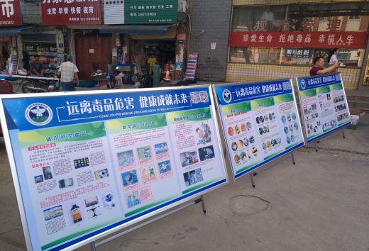 工作人员通过摆放禁毒宣传展板,向群众讲解毒品的种类、危害,以及如何预防染上毒品,教育周围群众及家人远离毒品、珍爱生命。