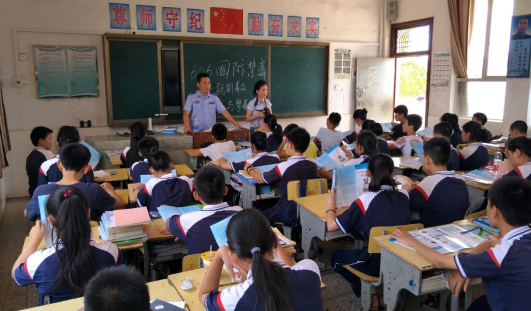 6月26日下午,新墙镇司法所工作人员人员周望伏、揭鹏走进新墙镇中心学校,向学生们,介绍向学生介绍与毒品相关的真实案例,让学生更加深刻地了解到了毒品及其危害。