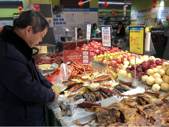 年关将至,家家户户开始为过年年货购置做准备,为切实保障岳阳县人民在此期间的食品安全,2020年1月2日,岳阳县市场监督管理局食品流通安全监管股工作人员在步步高连锁超市富安广场店、大沣和超市、中心市场等食品经营场所开展2020年关守护整治行动,重点检查该经营场所内食品是否存在过期、霉变未下架现象,散装食品的三防设施是否符合规定,猪肉及其制品是否经检验检疫等。