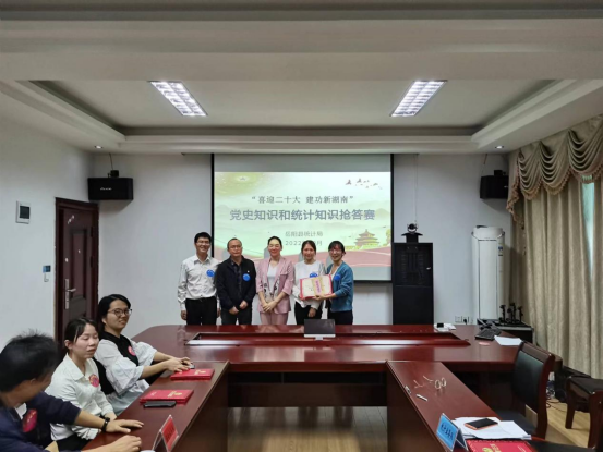 参赛队伍分为两队:统计业务队、调查业务队,各参赛队选手准备充分、配合默契,运用扎实的党史和统计知识,对答如流,难分高下。紧张激烈的抢答题环节将现场氛围一次次推向高潮,抢答器声此起彼伏,扣人心弦。经过激烈角逐,最终评选团体优胜奖一个与个人先进四名,并颁发了荣誉证书。