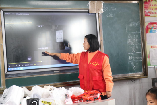 党员志愿者带领学生们回顾党的风雨岁月,重温党的光辉历史。“为中国之崛起而读书”的周总理、慷慨就义的刘胡兰、解放时期年纪最小的战士“小萝卜头”……一个个鲜活生动的人物、一件件感人至深的事迹,生动展现了革命斗争时期的艰难困苦,加深了学生们对波澜壮阔的百年党史的认知和理解,把红色记忆、红色基因的种子播进了学生心田,引导学生听党话、跟党走,争做时代好少年。