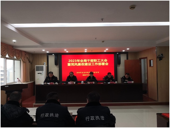 会议传达了岳阳市生态环境局总结表彰大会精神、岳阳县三级干部会议暨作风建设年动员大会精神,学习了岳阳县委出台的《“建四区,勇担当”作风建设年“三大行动”实施方案》和《优化营商环境“八严禁”》文件精神。与会人员全员签订了《党风廉政和作风建设承诺书》。