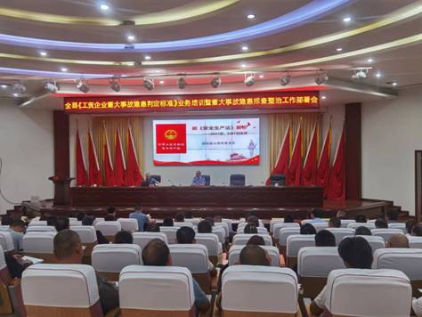 5月16日下午,县应急管理局在县委党校报告厅召开全县《工贸企业重大事故隐患判定标准》业务培训暨重大事故隐患排查整治工作部署会, 各乡镇(办事处)、园区安环科负责人,全县工贸企业主要负责人等共计200余人参加了会议。