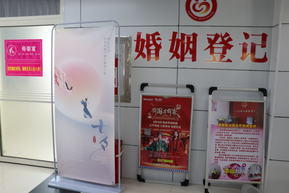 活动现场,志愿者们在办公区域醒目位置悬挂宣传横幅及七夕佳节宣传展板并发放婚俗改革倡议书,鼓励准新人们婚事新办,倡导弘扬美德,传承良好家风,为广大青年营造了良好的登记氛围。