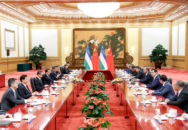 李克强表示,中乌拥有历史悠久的传统友谊。建交以来,两国在涉及彼此核心利益问题上相互坚定支持,中乌关系与合作不断取得新进展。习近平主席同米尔济约耶夫总统多次成功会晤,推动两国关系不断迈上新台阶。中方高度重视中乌关系,愿同乌方密切高层往来,促进贸易投资自由化便利化,加强在国际地区事务中的沟通协调,为本地区实现持久和平、稳定与繁荣增添动力。