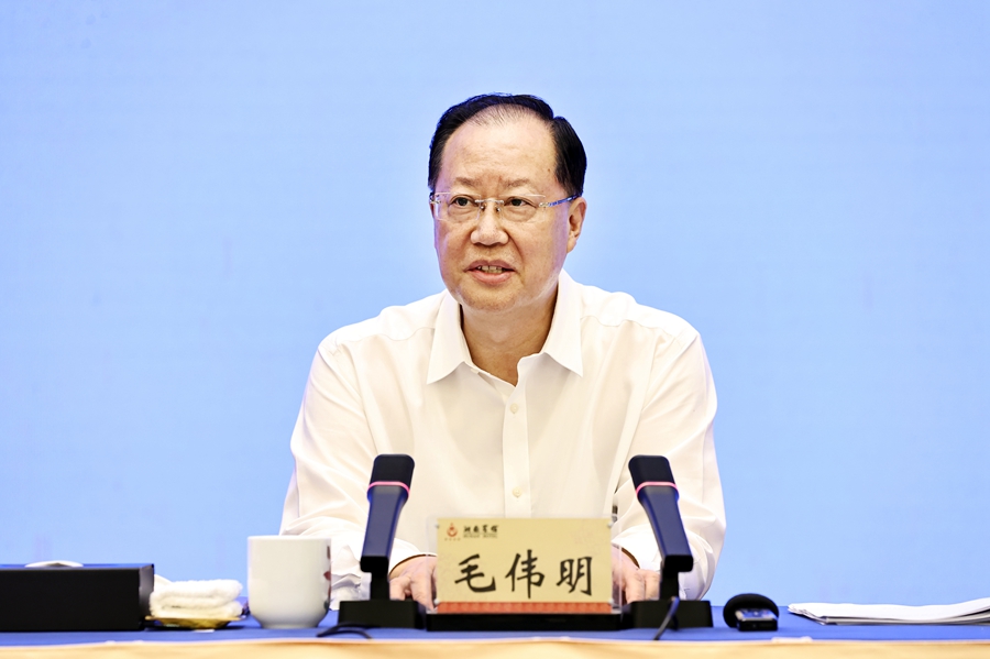 7月18日下午,省政府召开第二次全体会议,总结上半年经济工作,分析上半年形势,部署下半年经济工作重点。省委副书记、省长毛伟明强调,要深入贯彻习近平总书记关于湖南工作的重要讲话和指示批示精神,按照省委工作部署,锚定“三高四新”美好蓝图,把主题教育与中心工作结合起来,打好打赢“发展六仗”,努力完成全年目标任务。