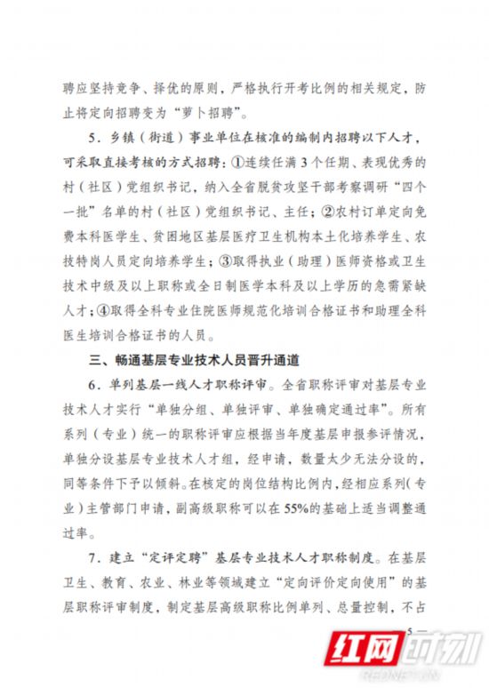 《意见》明确,鼓励高校毕业生到基层工作,引导专业技术人员服务基层,规范基层事业单位人员调配。