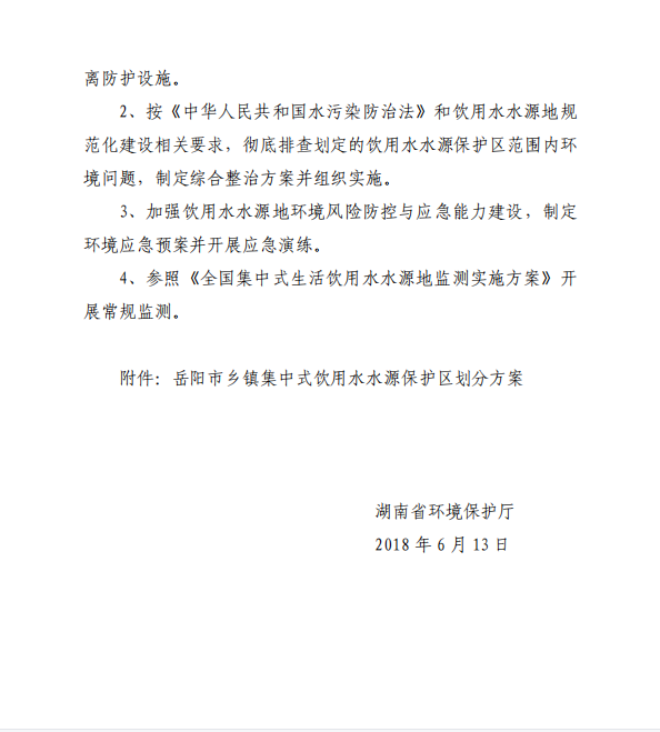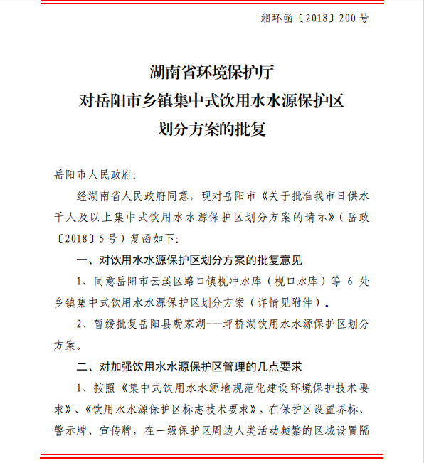 岳阳市乡镇及以下(千人万吨)集中式供水饮用水水源保护区划定方案