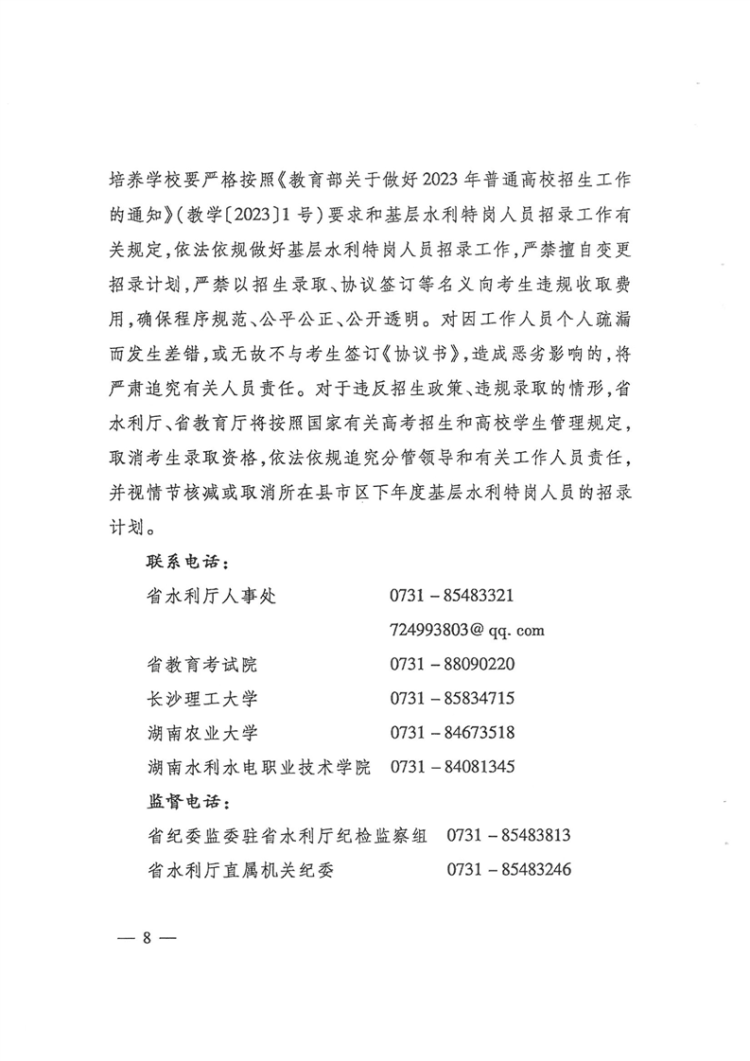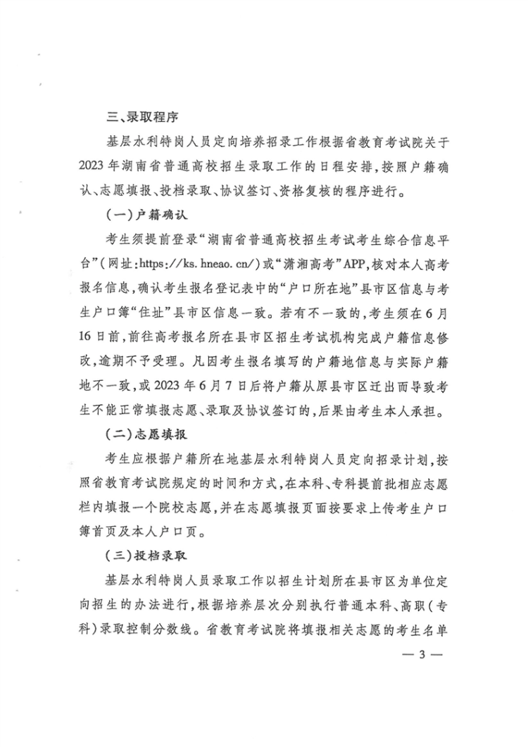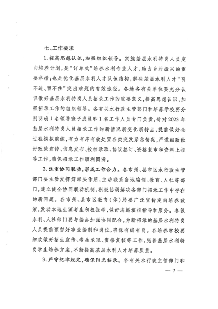 关于做好2023年基层水利特岗人员定向培养招录工作的通知