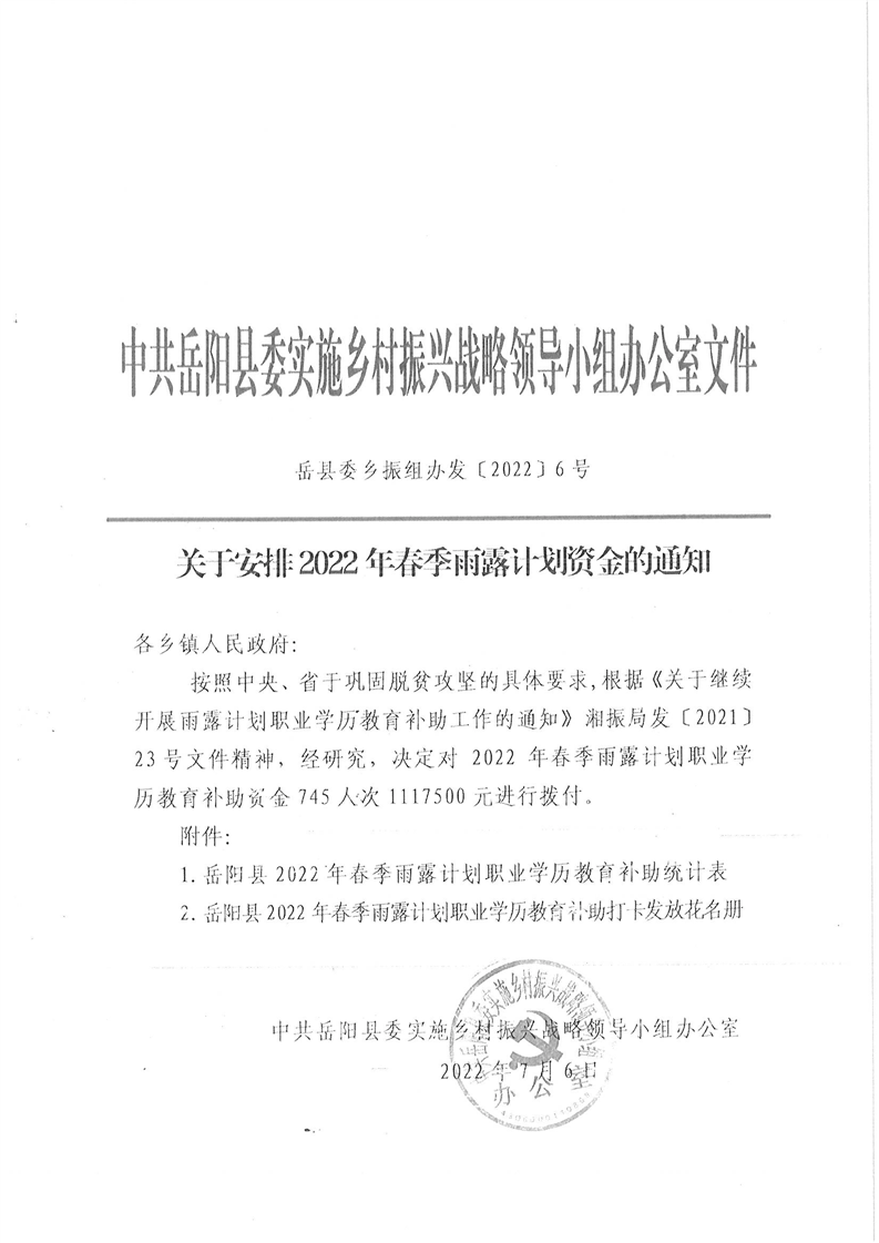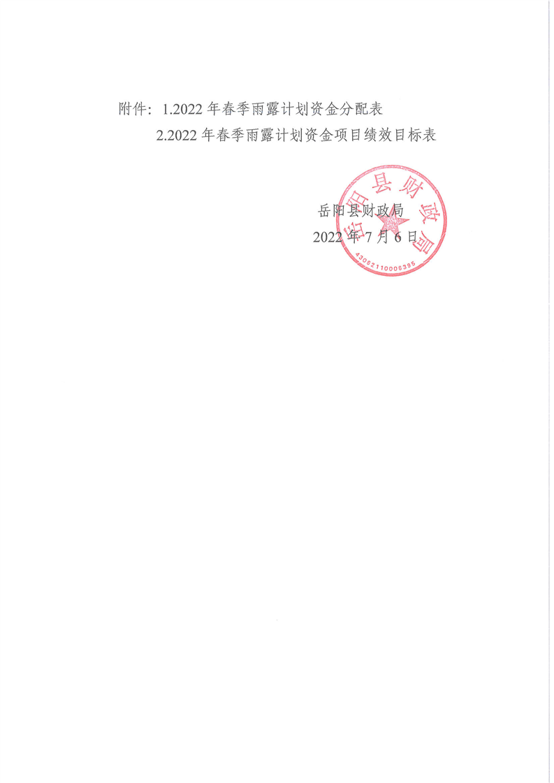 岳阳县财政局下达2022年春季雨露计划资金及绩效目标批复的公开公示