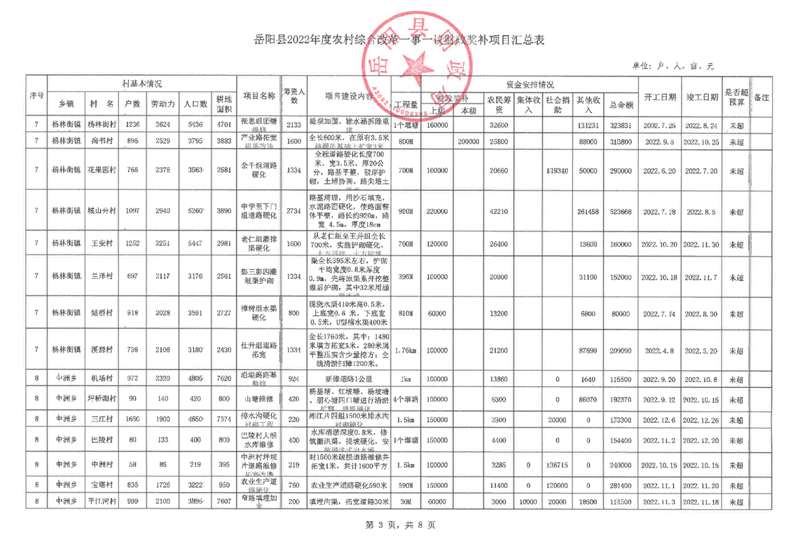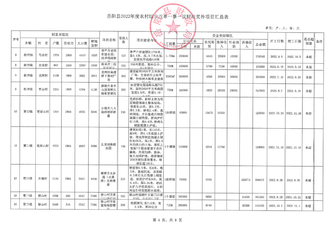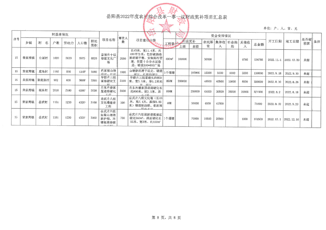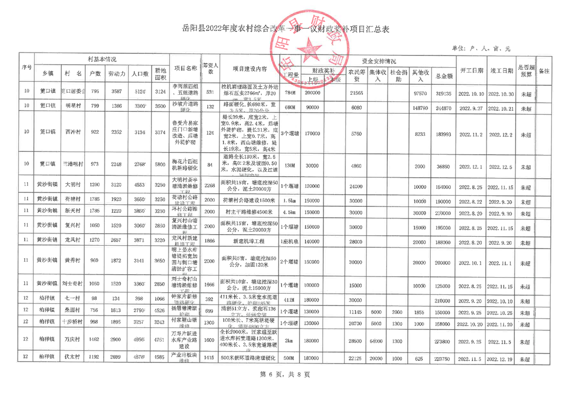 岳阳县2022年度农村综合改革一事一议财政奖补项目汇总表12月30日
