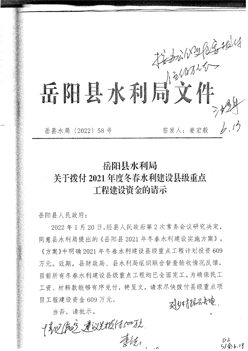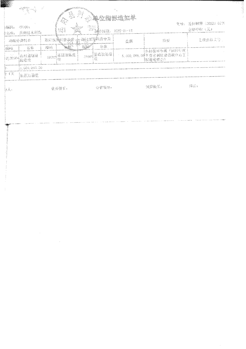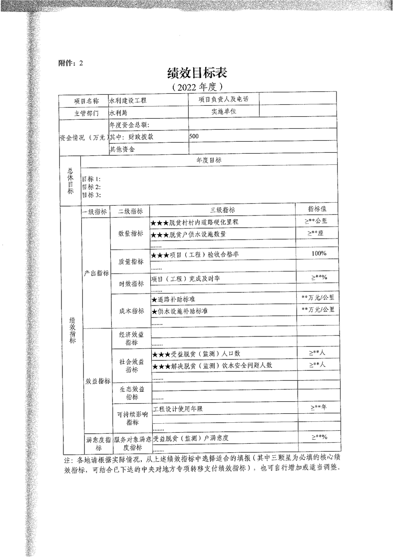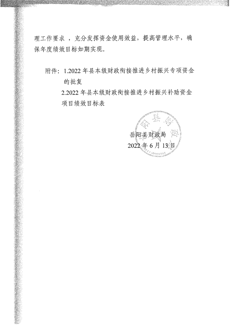 岳阳县财政局关于下达2022年县本级财政衔接推进乡村振兴补助资金及绩效目标批复(水利局500)公开公示