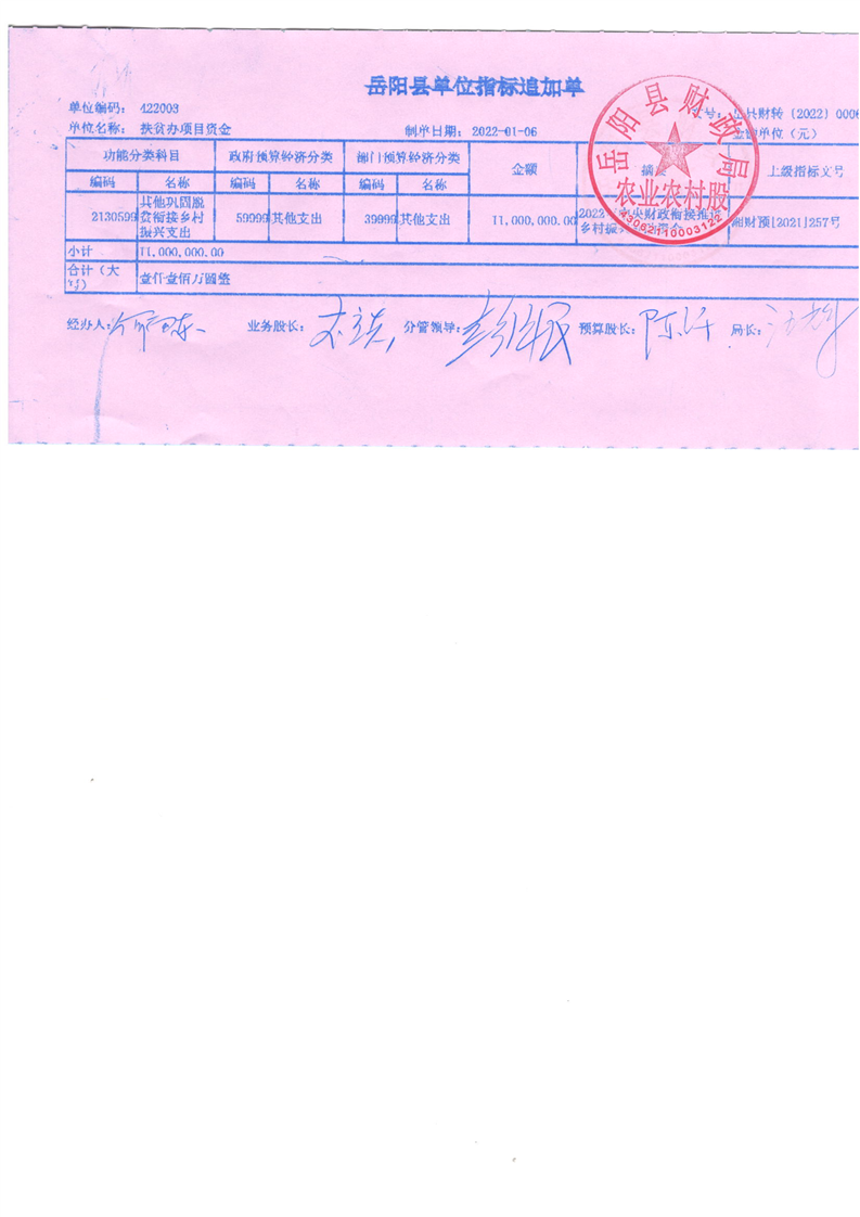 岳阳县财政局下达2022年中央财政衔接推进乡村振兴补助资金公开公示