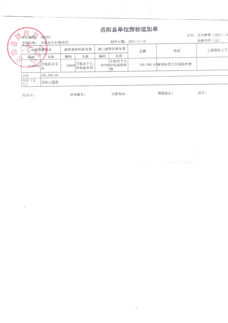 2021年巩固拓展脱贫攻坚成果同乡村振兴有效衔接防贫责任保险经费公开公示