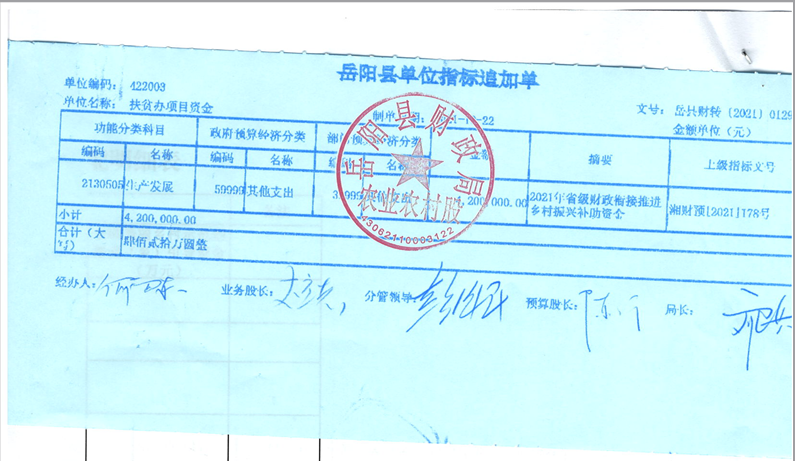 岳阳县财政局关于下达2021年省级财政衔接推进乡村振兴补助资金公开公示