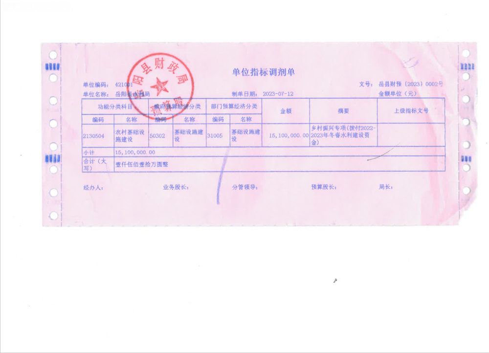 岳阳县本级财政乡村振兴专项(2022-2023年冬春水利建设资金)公开公示