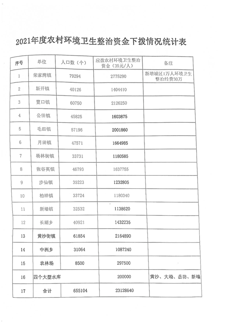 岳阳县本级财政乡村振兴专项(全县农村环境卫生整治剩余资金)公开公示