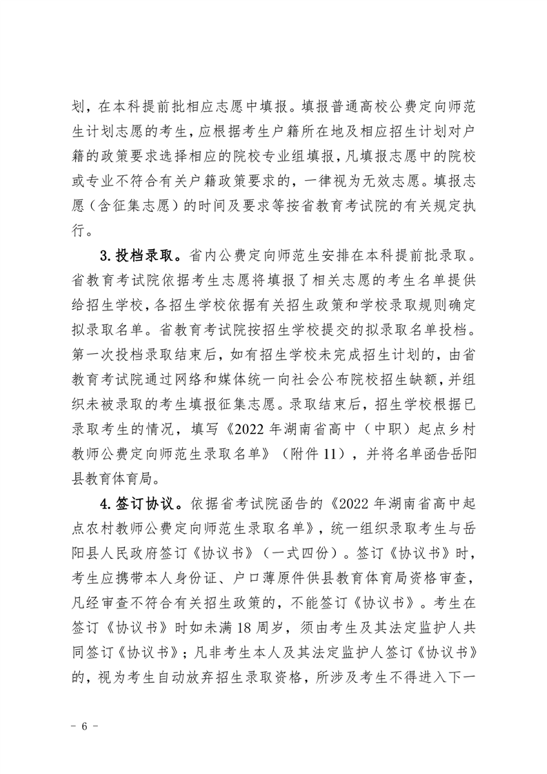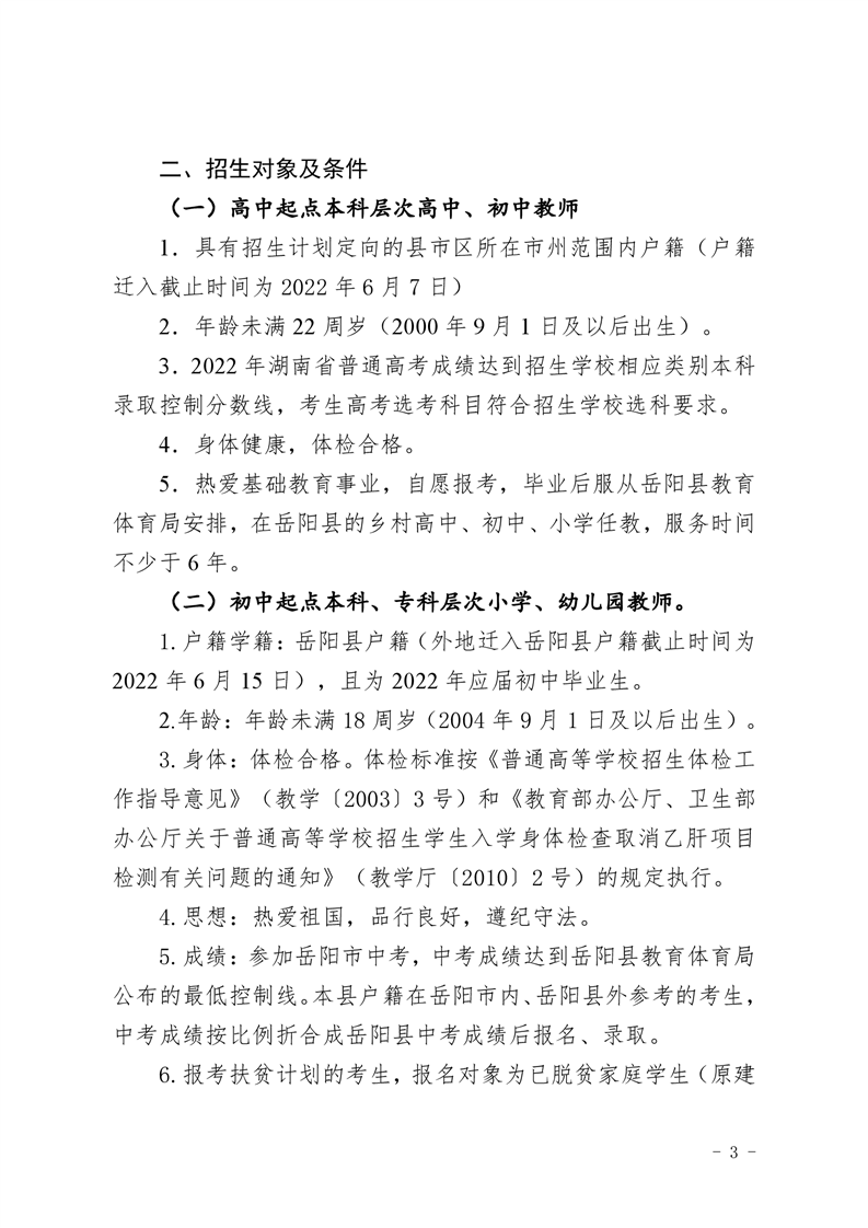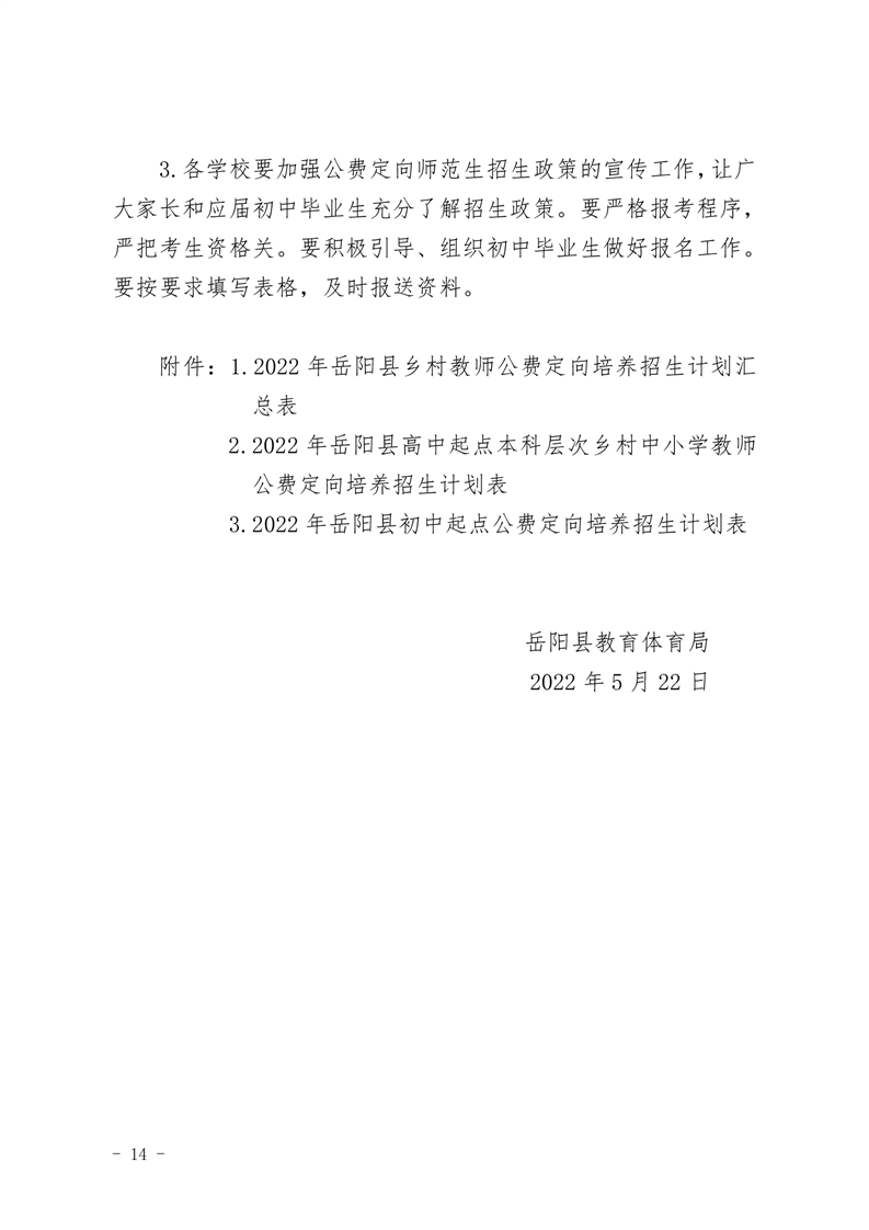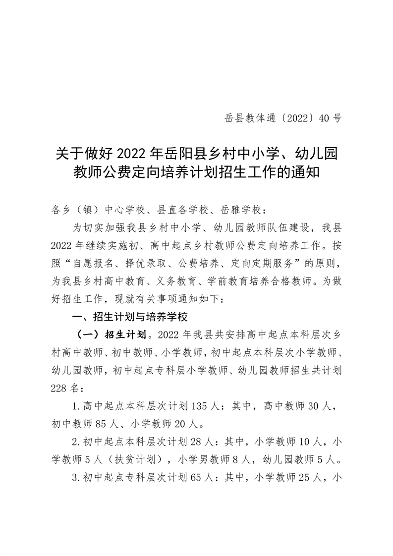 关于做好2022年岳阳县乡村中小学、幼儿园 教师公费定向培养计划招生工作的通知