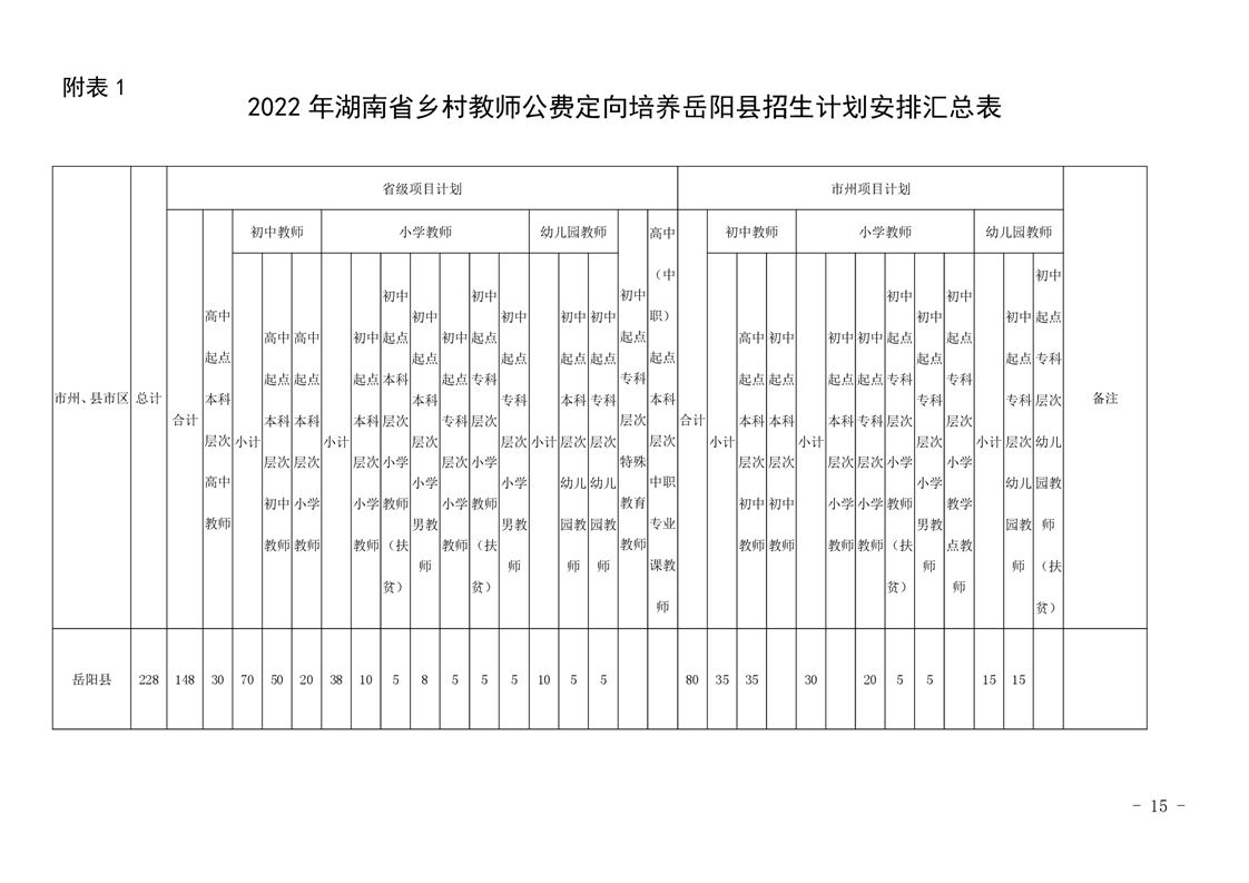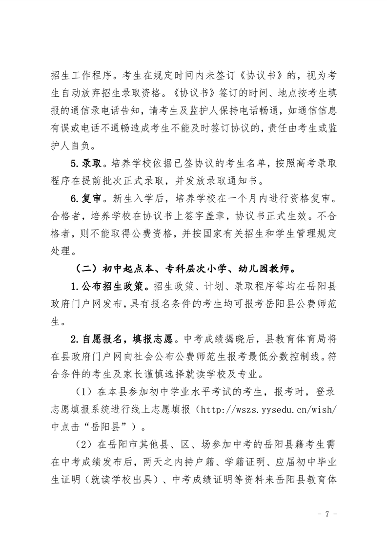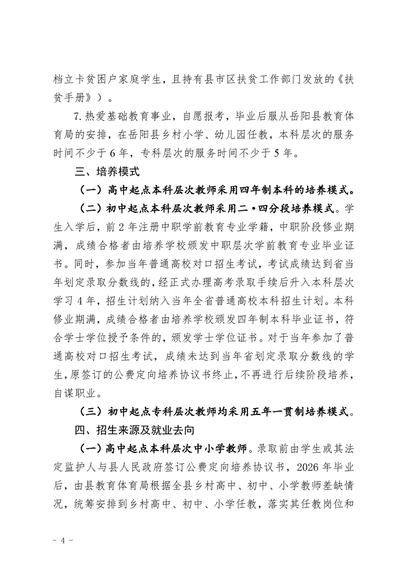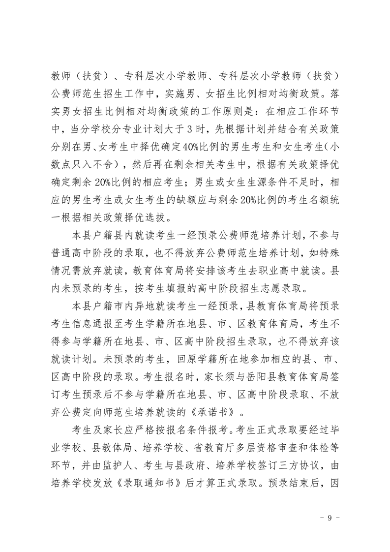 关于做好2022年岳阳县乡村中小学、幼儿园 教师公费定向培养计划招生工作的通知