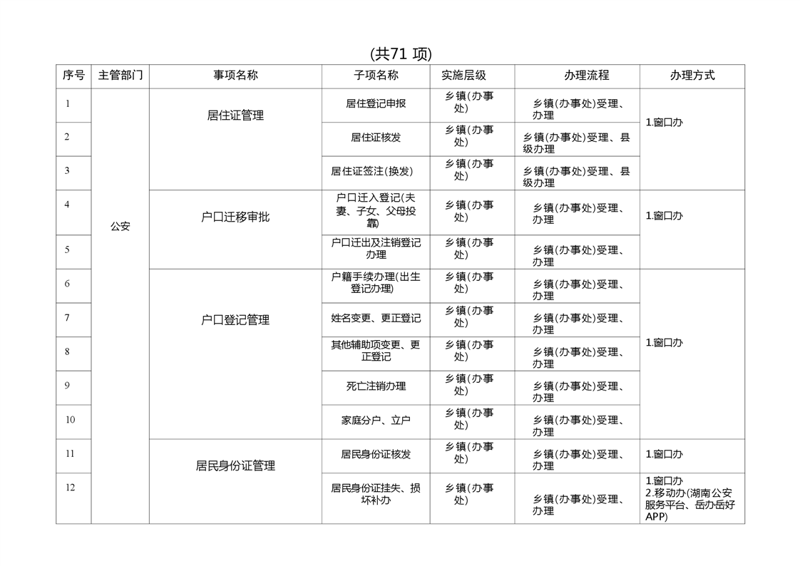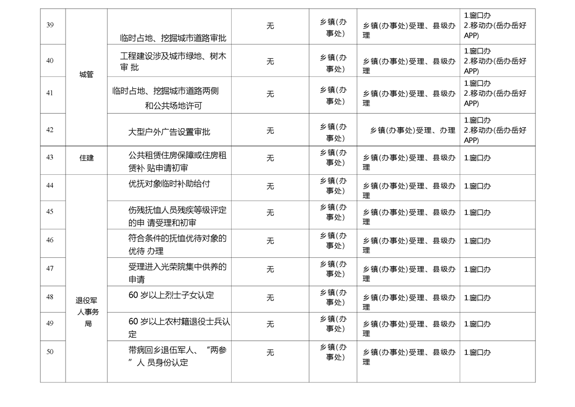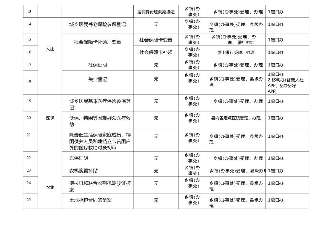 岳阳县乡镇(办事处)政务服务暨就近办事项清单