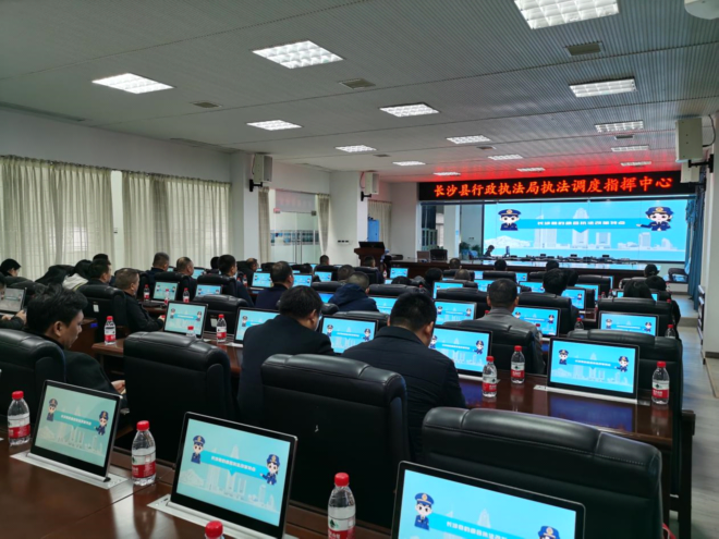 培训班一行先来到长沙县行政执法局,工作人员介绍了长沙县行政执法局了综合执法改革情况,随后在长沙县行政执法局指挥调度中心,工作人员现场详细介绍了该局的执法办案系统、阳光执法公示系统、远程指挥调度系统、电子监察系统、无人机巡查系统、办公自动化系统的工作方式和运行情况。在随后召开的座谈会上,双方就“一支队伍管执法”的运行情况、行政执法局与管理部门、街镇职责职能划分情况,行政执法局日常办案的立案、流转、审批、监督等情况进行交流与探讨。