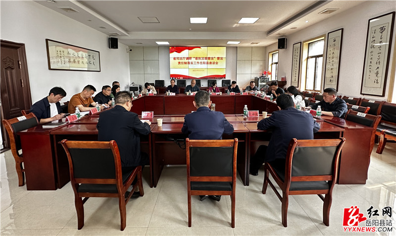岳阳县融媒体中心5月12日讯(记者 陈佳俊 实习记者 龙佳敏)5月12日,省司法厅调研组来我县调研“谁执法谁普法”普法责任制落实情况,副县长、县公安局局长陈遇春和市县相关单位负责人陪同调研。
