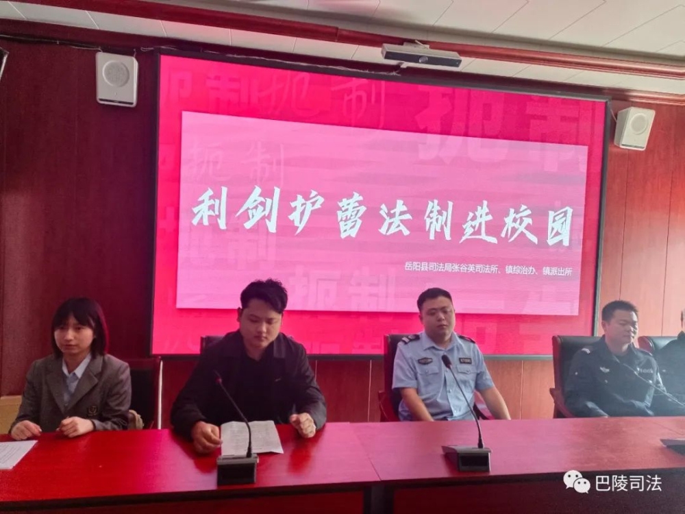 为进一步加强对未成年人特别是已满14周岁的司法保护,提高未成年人的法律知识和防范意识,增强未成年人对新型毒品如依托咪酯的鉴别和危害认识。岳阳县司法局张谷英司法所联合镇派出所、综治办、禁毒办,于2023年10月11日深入张谷英镇中心学校开展以防止校园性侵、校园欺凌和新型毒品危害宣传教育为主题的“利剑护蕾”法治进校园教育宣传活动。