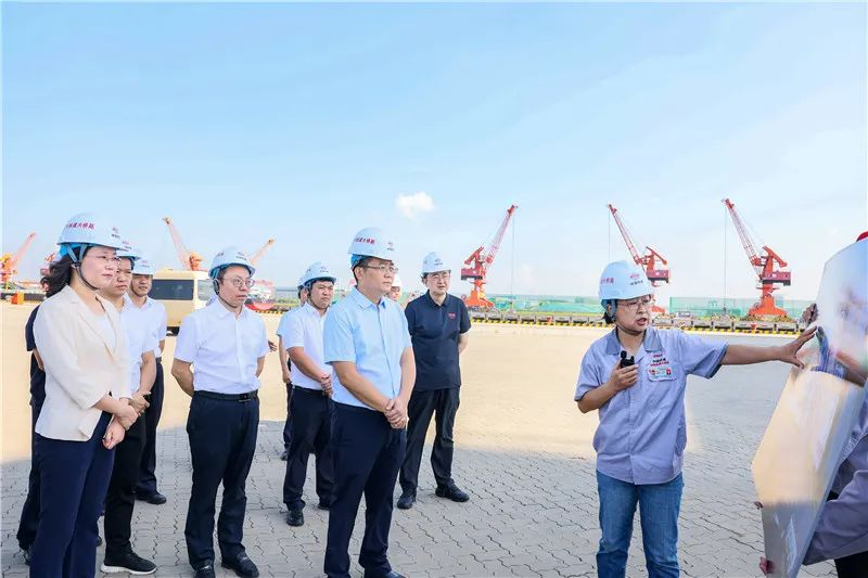 在靖江市考察学习期间,肖湘晖一行实地参观了牧城公园、中铁建靖江港区、卓然智能重装产业园、江苏新时代造船有限公司、靖江经济技术开发区展厅,了解靖江在临港产业布局、港口码头建设、沿江生态保护等方面的经验做法。