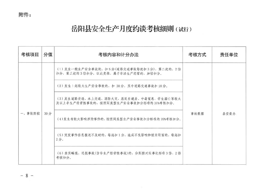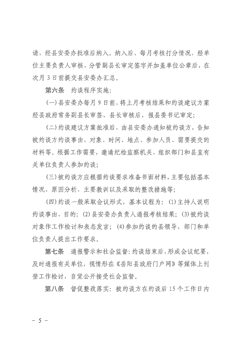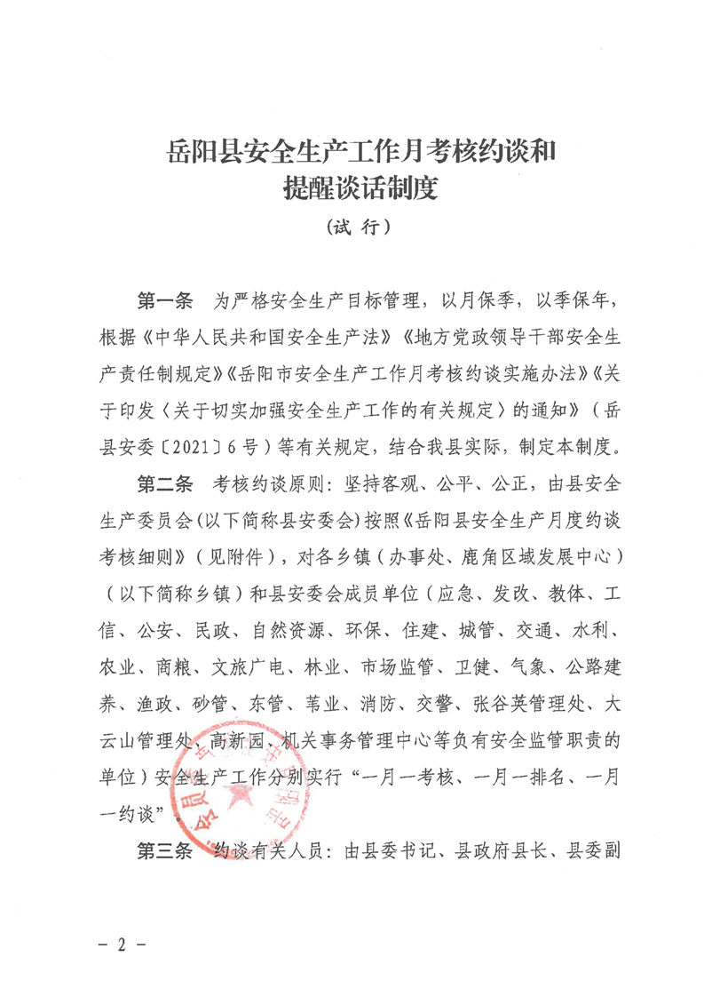 岳阳县安全生产工作月考核约谈和提醒谈话制度(试行)