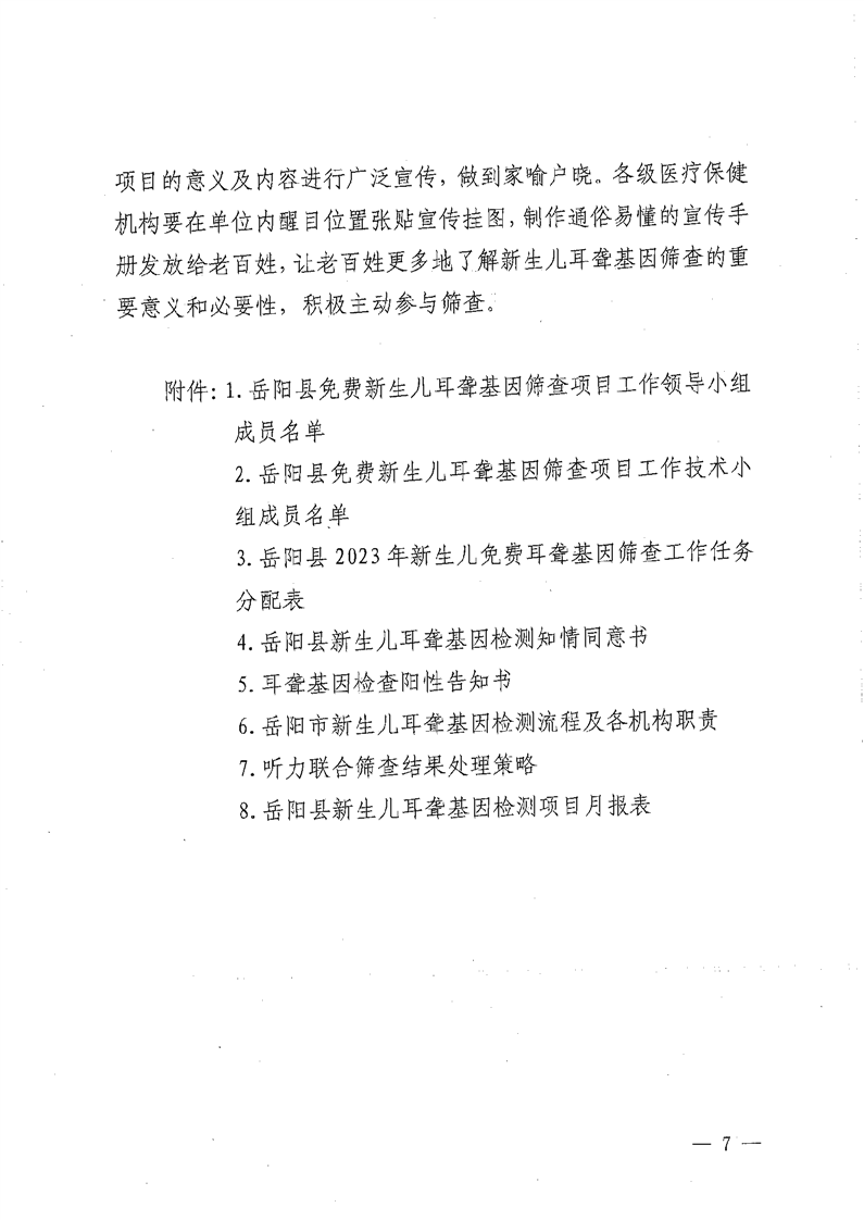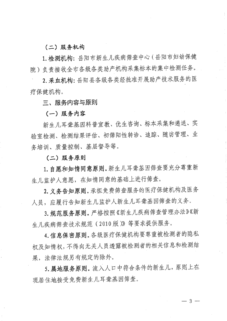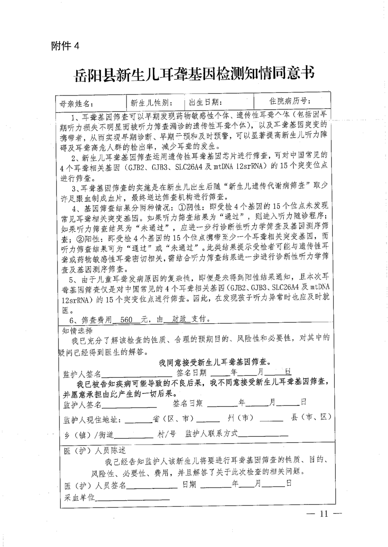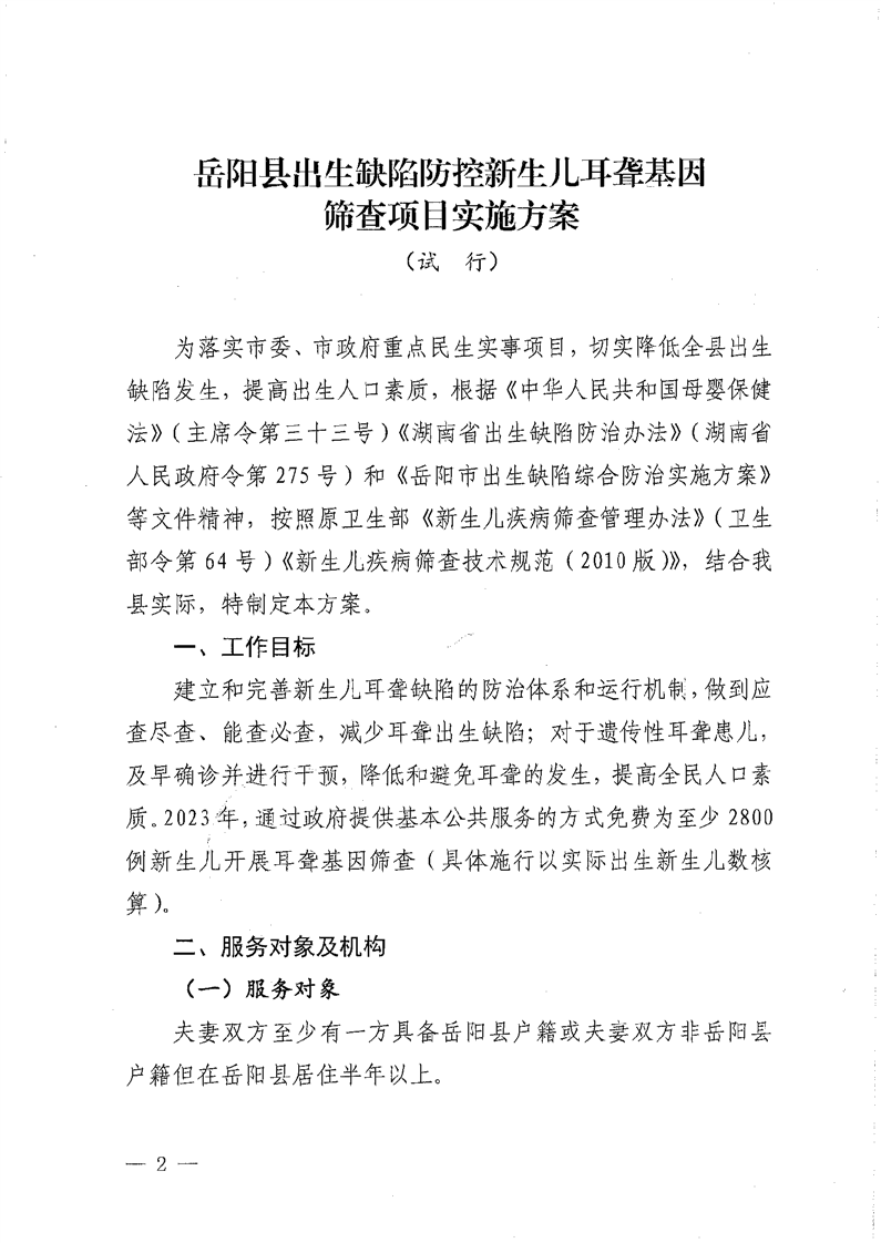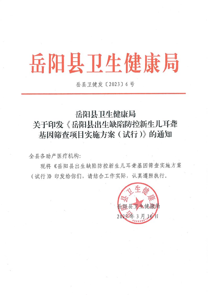《关于印发岳阳县出生缺陷防控新生儿耳聋基因筛查项目实施方案(试行)的通知》