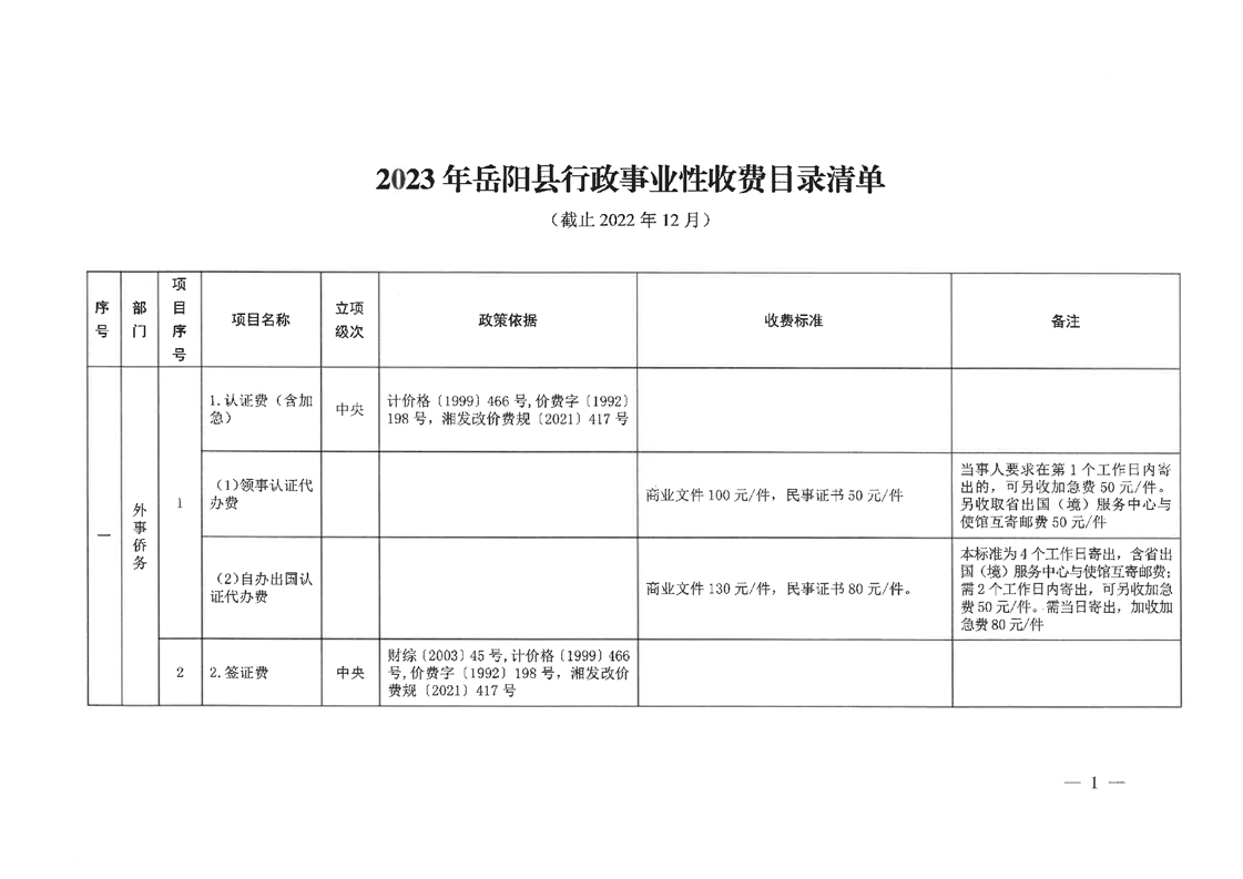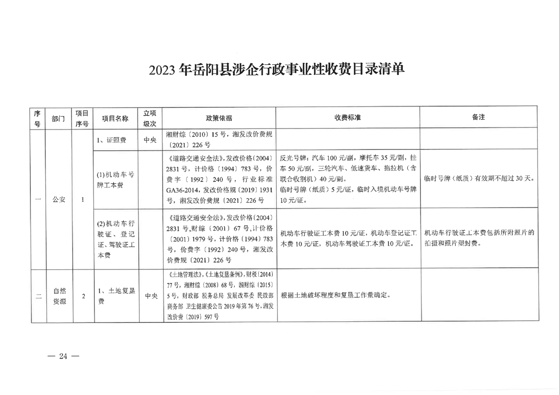 关于公布《2023年岳阳县行政事业性收费目录清单》《2023年岳阳县涉企行政事业性收费目录清单》的通告