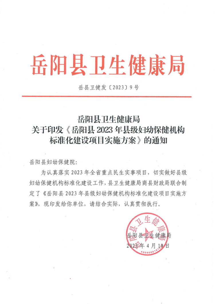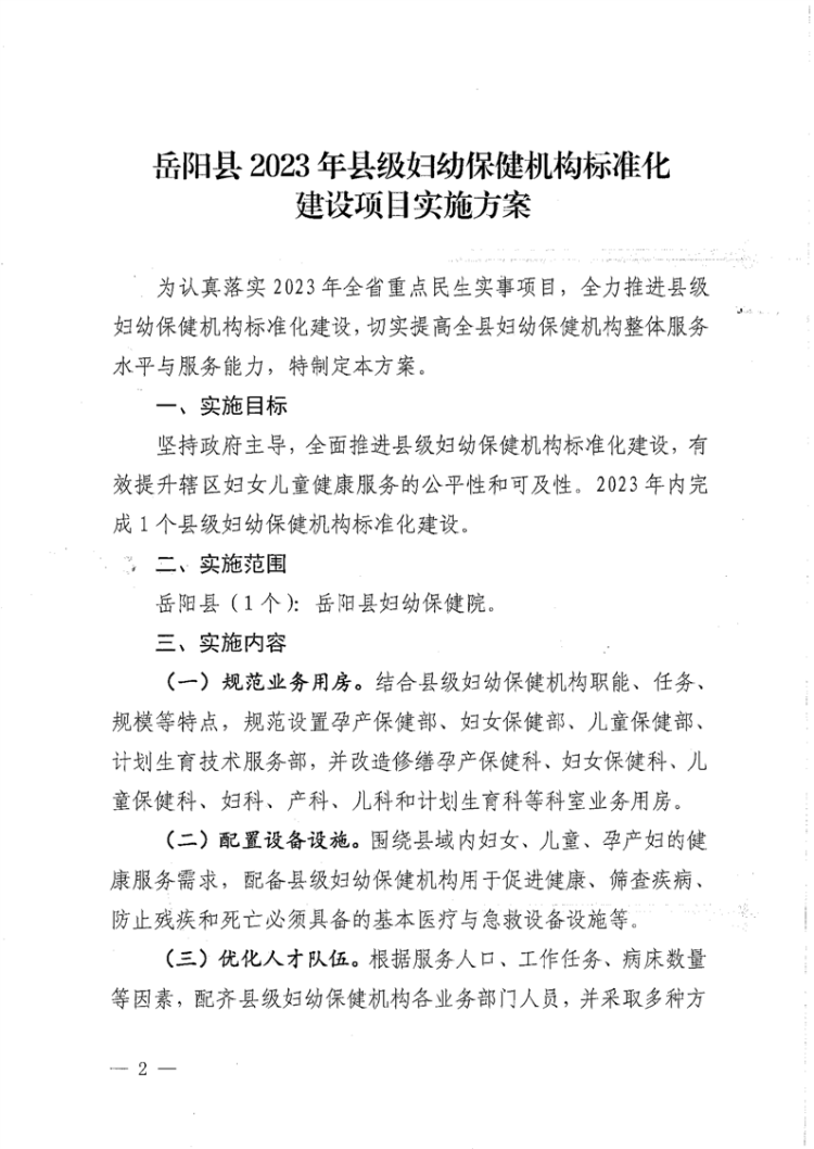 岳阳县2023年县级妇幼保健机构标准化建设项目实施方案
