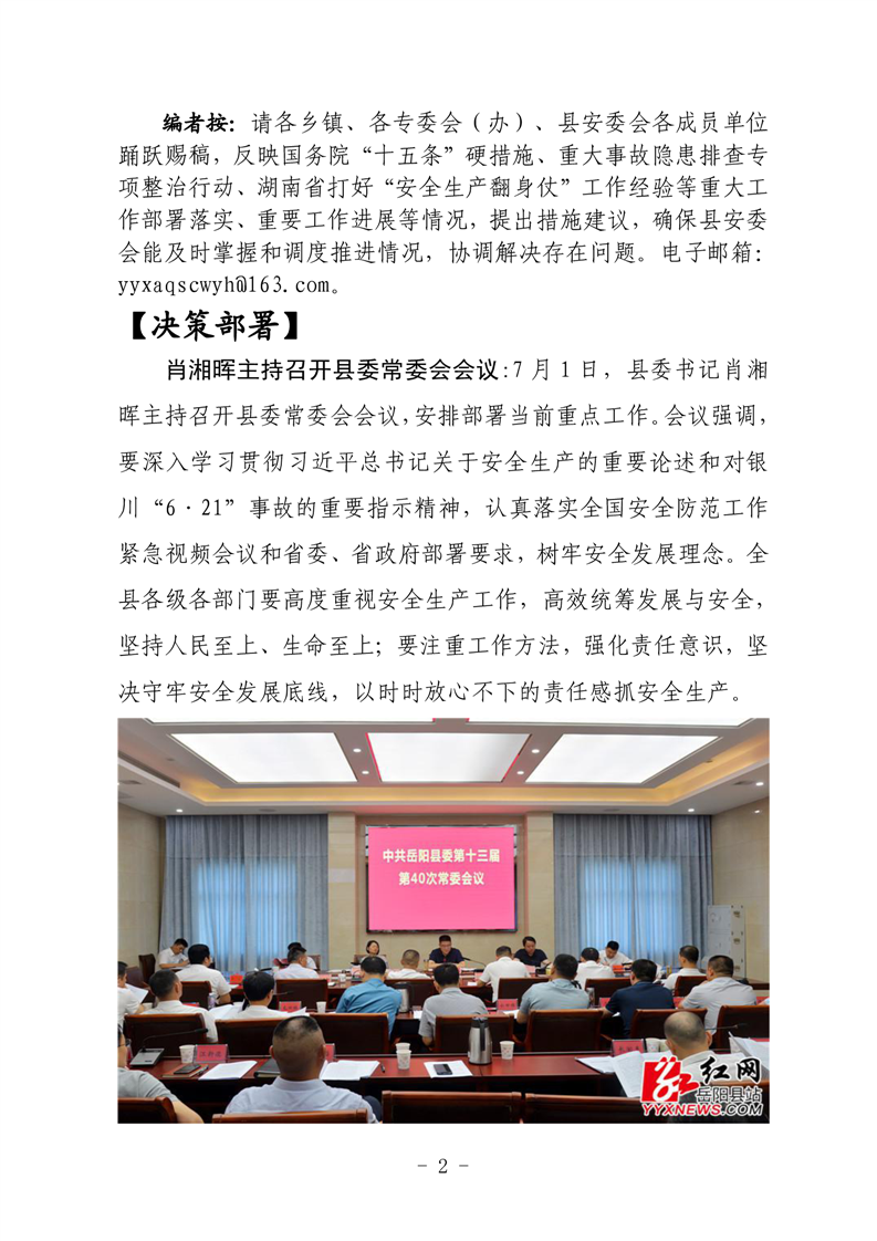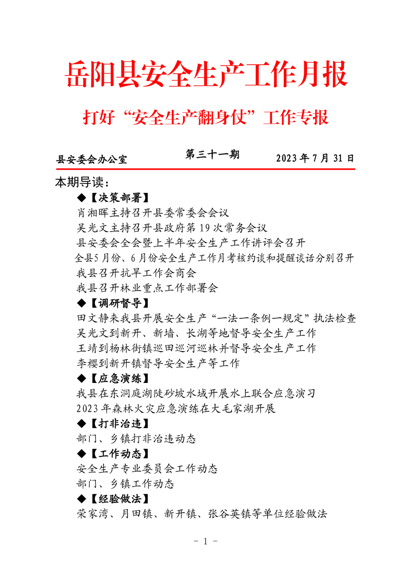 岳阳县打好“安全生产翻身仗”工作专报(三十一期)
