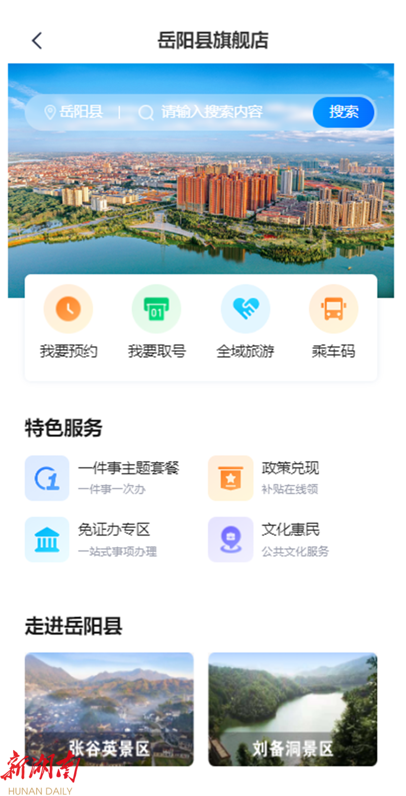 据悉,“湘易办”岳阳县旗舰店已于近日正式上线运行,内容覆盖即申即办、交通出行、教育考试、医疗健康、旅游消费、企业服务、人才就业、阳光补贴、便民缴费、适老关怀、便民服务十大主题,重点推出了“文化惠民、一件事一次办、政策兑现、免证办”4个本地特色服务,聚焦群众和企业高频办事需求,创新打造全域旅游、城市导航、健康岳阳县、不动产服务四个高频应用场景。截止目前,“湘易办”岳阳县旗舰店第一批已上线本地特色应用共100余项,各项惠民便民服务功能、应用场景仍在持续完善中。