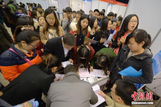 资料图:在山西太原举办的人才智力交流大会上,上万名应届大学毕业生涌进现场,寻找工作。中新社发韦亮 摄