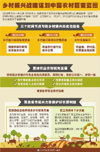 “实施乡村振兴战略,是新时代做好‘三农’工作的总抓手、新旗帜。”中央农办主任韩俊说,“文件按‘远粗近细’原则对实施乡村振兴战略的三个阶段性目标任务作了部署。”