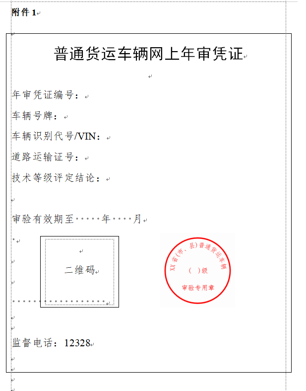 1. 附件1:普通货运车辆网上年审凭证.doc