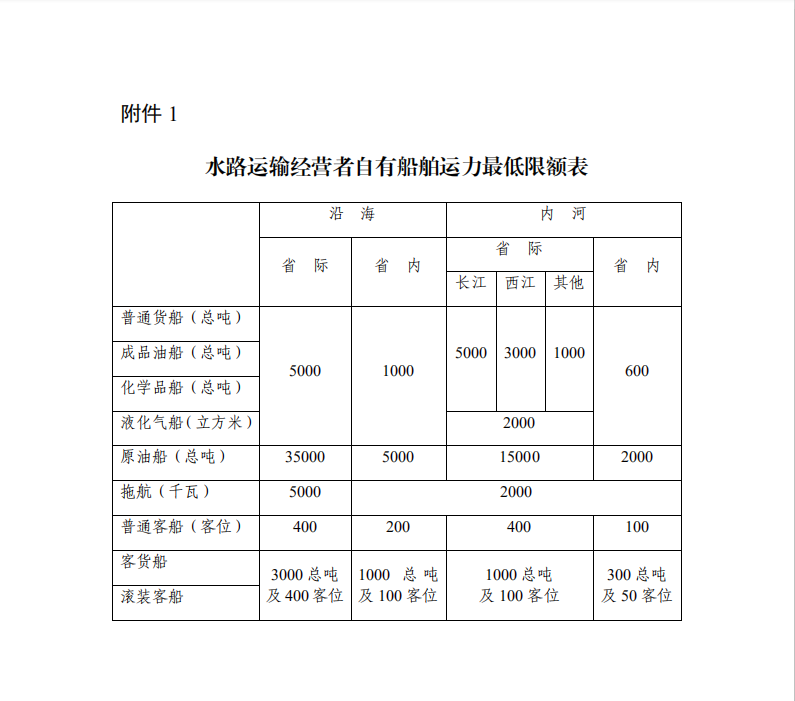 (三)有符合本规定要求的船舶,且自有船舶运力应当符合附件1的要求。