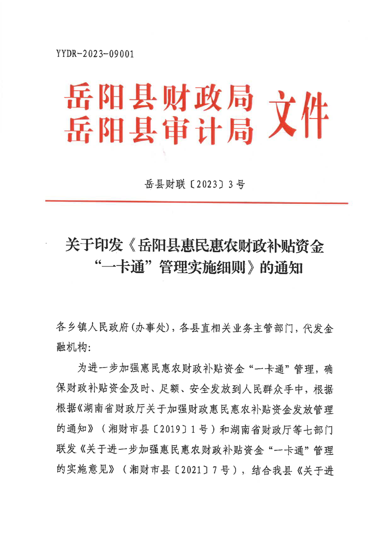 岳阳县惠民惠农财政补贴资金“一卡通”发放管理实施细则