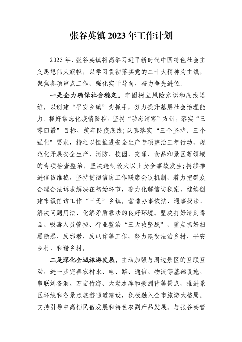 张谷英镇2023年工作计划