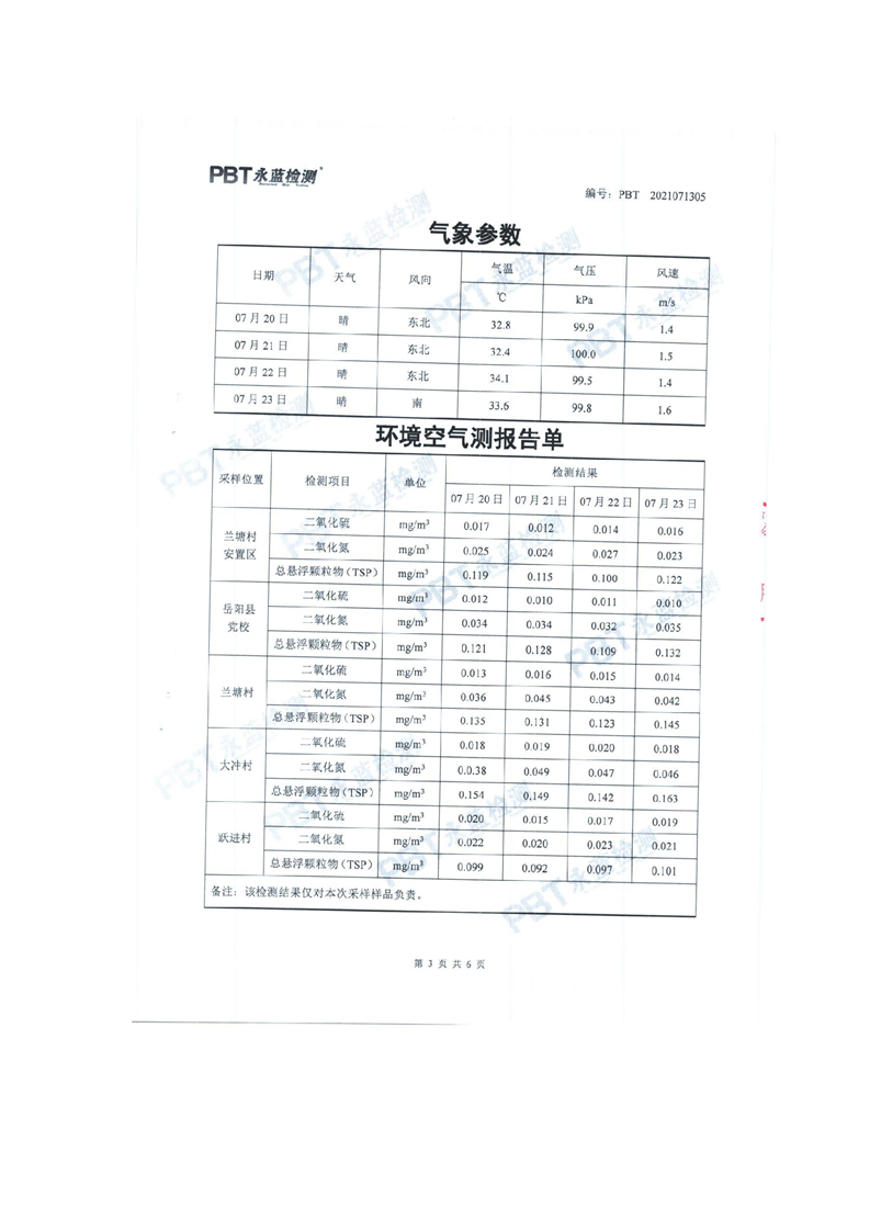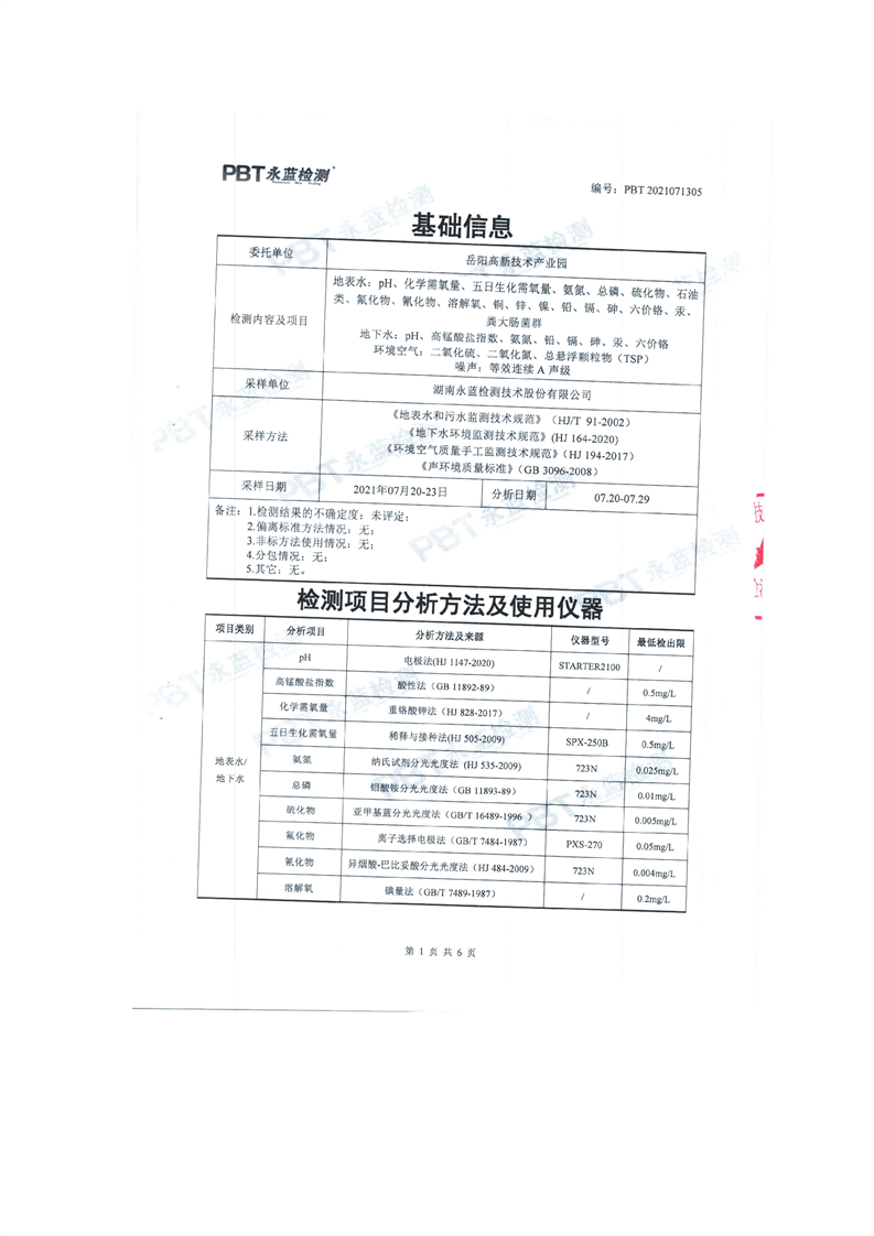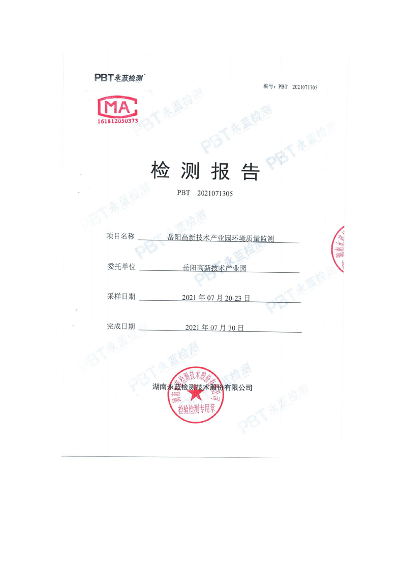 岳阳高新技术产业园区2021年3季度环境质量监测报告