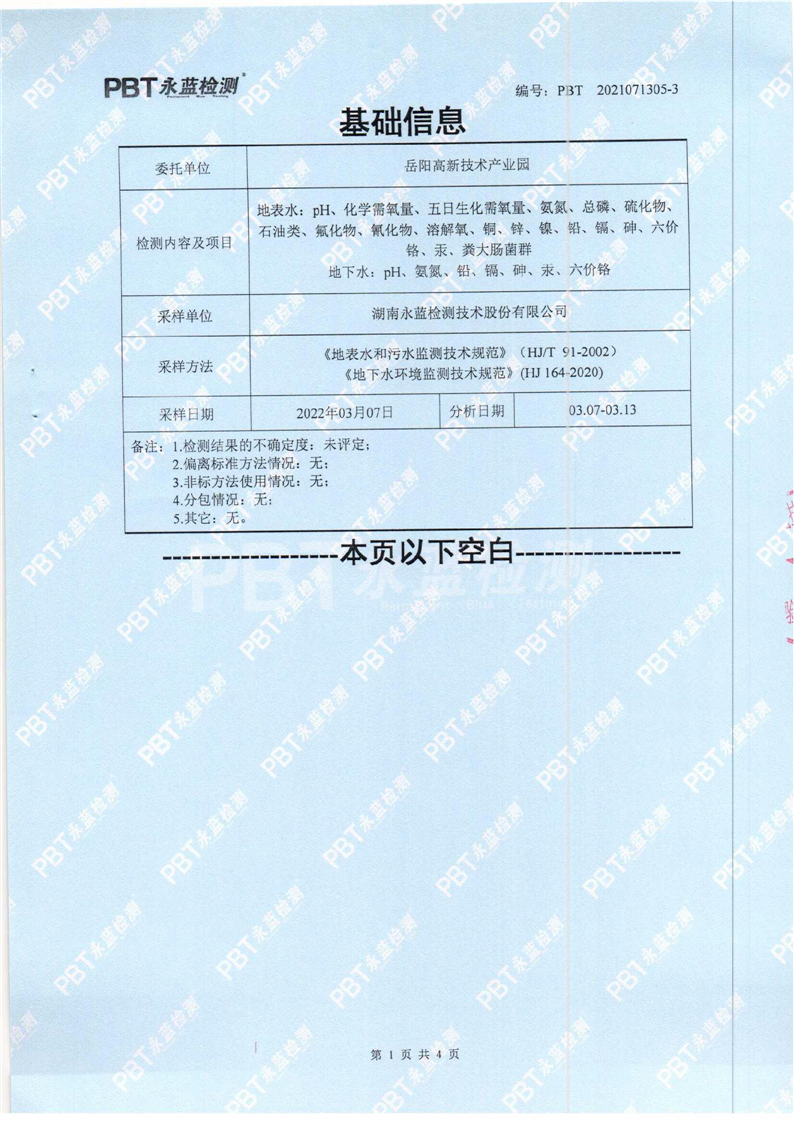 2022年度第一季度岳阳高新技术产业园区环境质量监测